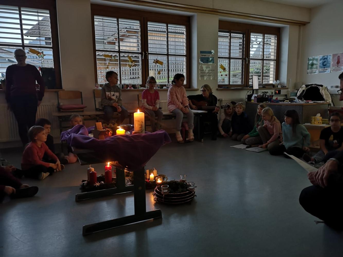 Adventskranzweihe von Melanie Weißbacher 02. Dezember 2022 Advent Meditation Ruhe Stille Mit viel Musik und schönen Worten begann für die Kinder und Lehrerinnen die besinnlichste Zeit des Jahres. Nicht nur die Adventskränze, sondern auch die Kinder wurden von unserem Pfarrer gesegnet.