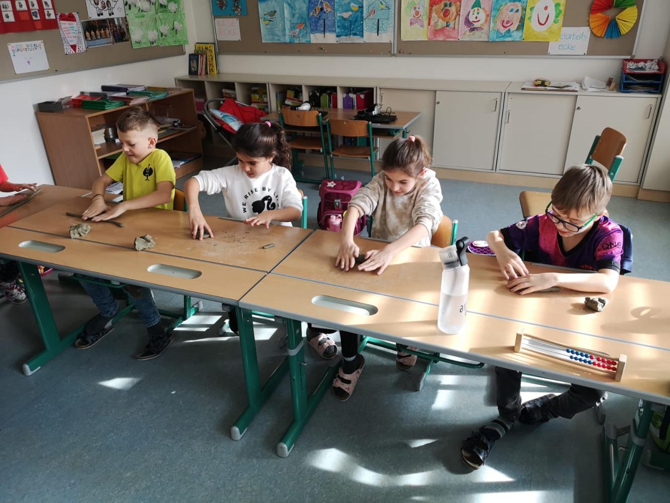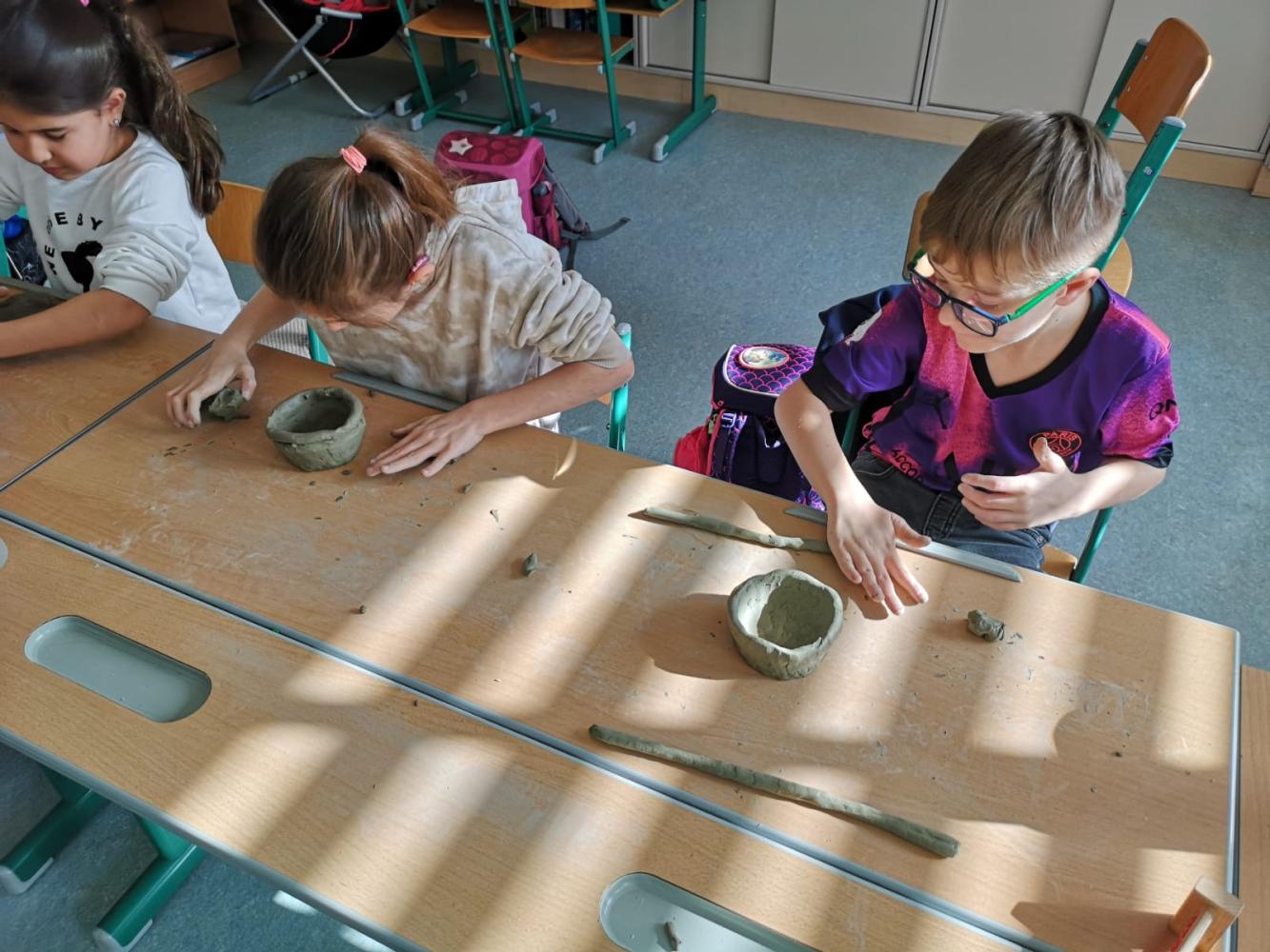 Arbeiten mit einem Bildhauer von Melanie Weißbacher 27. Februar 2023 Kulturservice Kunst Werken Die 2. Klasse bekam Besuch von David Sieberer, einem Bildhauer aus Innsbruck. Bei einem 2-stündigen Workshop konnten die Kinder Dinge aus Ton gestalten. So entstanden viele tolle Tassen, Schüsseln und Vasen.