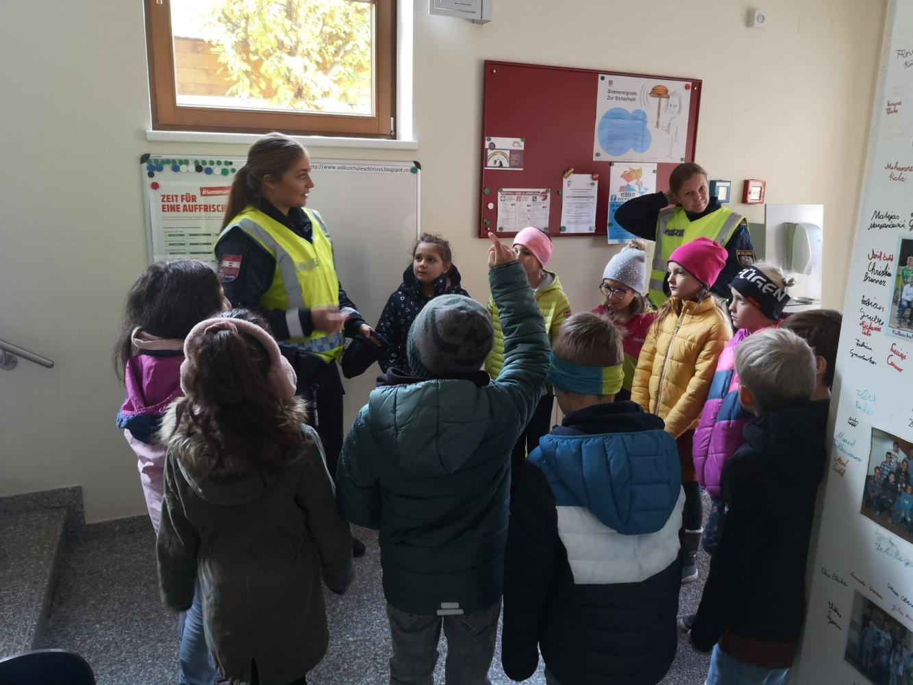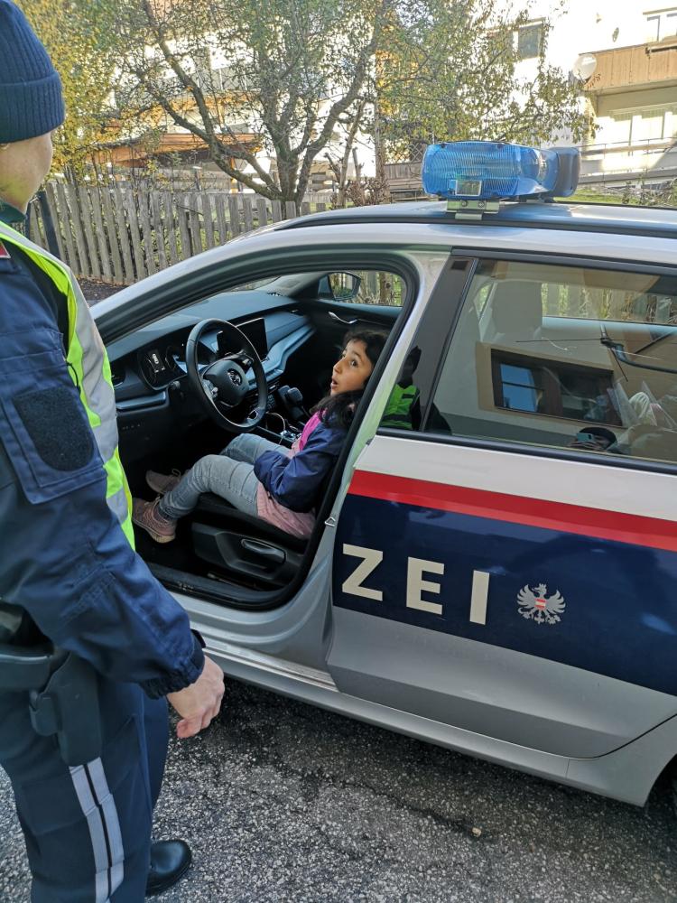 Am Dienstag bekamen die 1. und 2. Klasse Besuch von der Polizei. Zwei Polizistinnen zeigten den Kindern, wie man sicher die Straße überquert. Danach durften wir uns das Polizeiauto noch etwas genauer anschauen und Fragen stellen. Ein aufregender Vormittag!