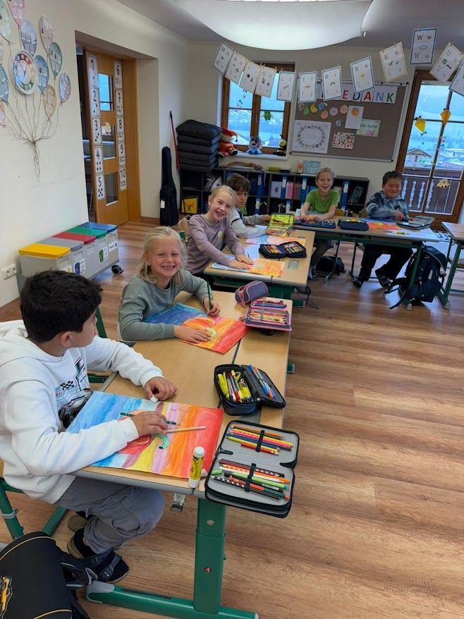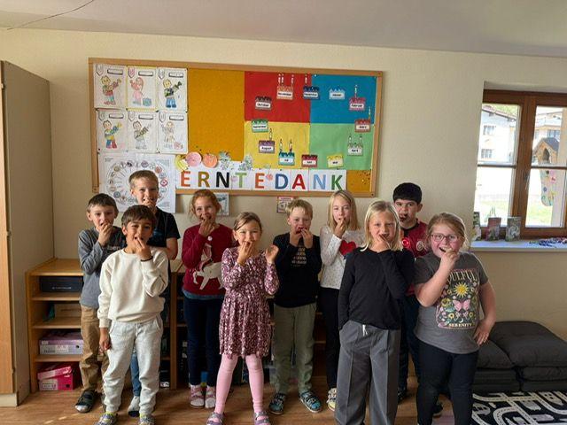 Drachen und Eulen verzieren unsere Fenster und passend zum Thema Herbst sammelten die Kinder Blätter und Früchte und brachten sogar Obst aus dem eigenen Garten mit.