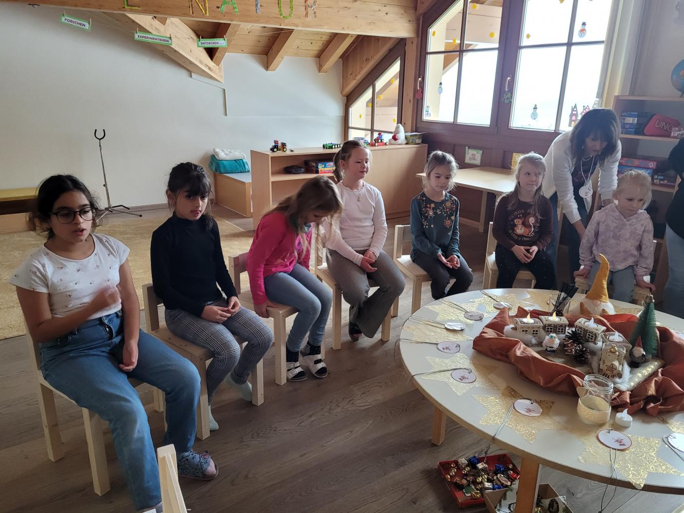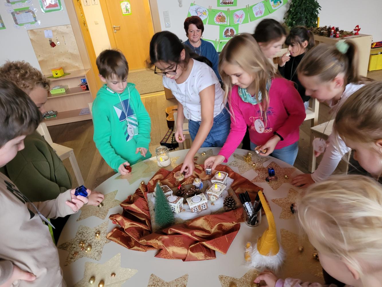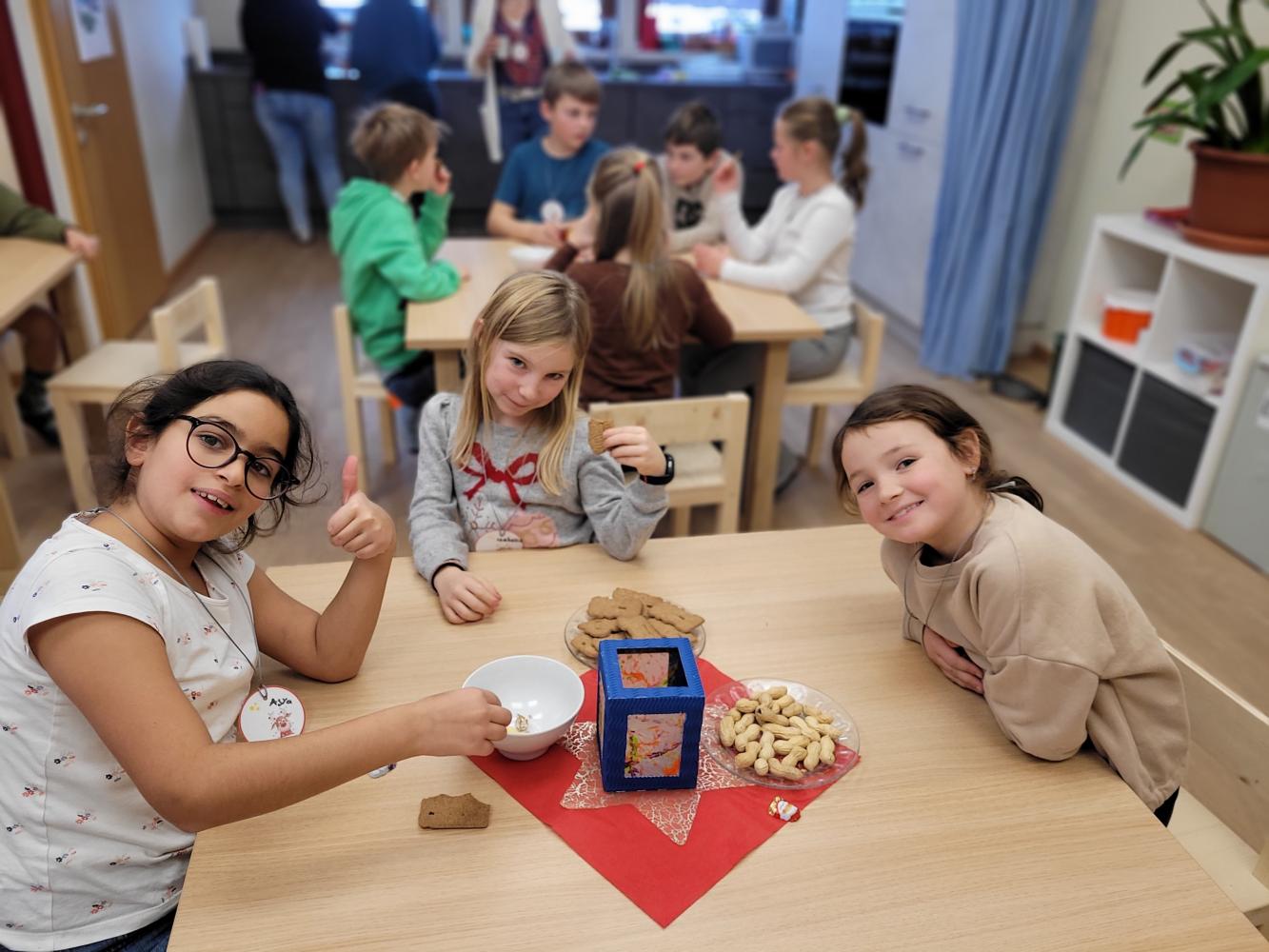 Hort von Melanie Weißbacher 18. Dezember 2023 Hort Alle Klassen besuchten den Hort mit Petra und ihrem Team. Mit viel Liebe bereiteten sie den Kindern eine schöne Adventsstunde vor. So hatten die Kinder die Möglichkeiten die Mitarbeiterinnen und den neuen Hort kennenzulernen.
