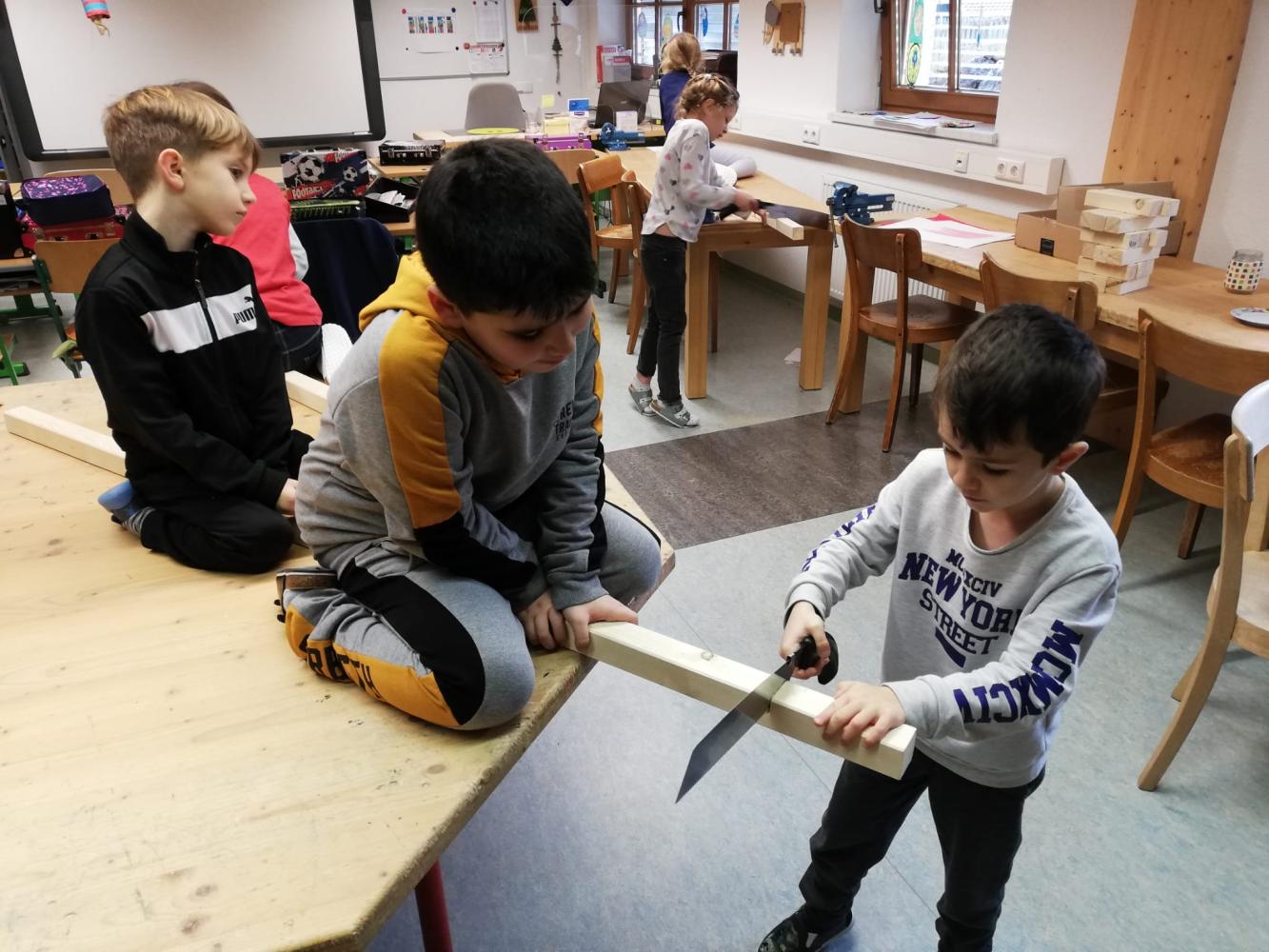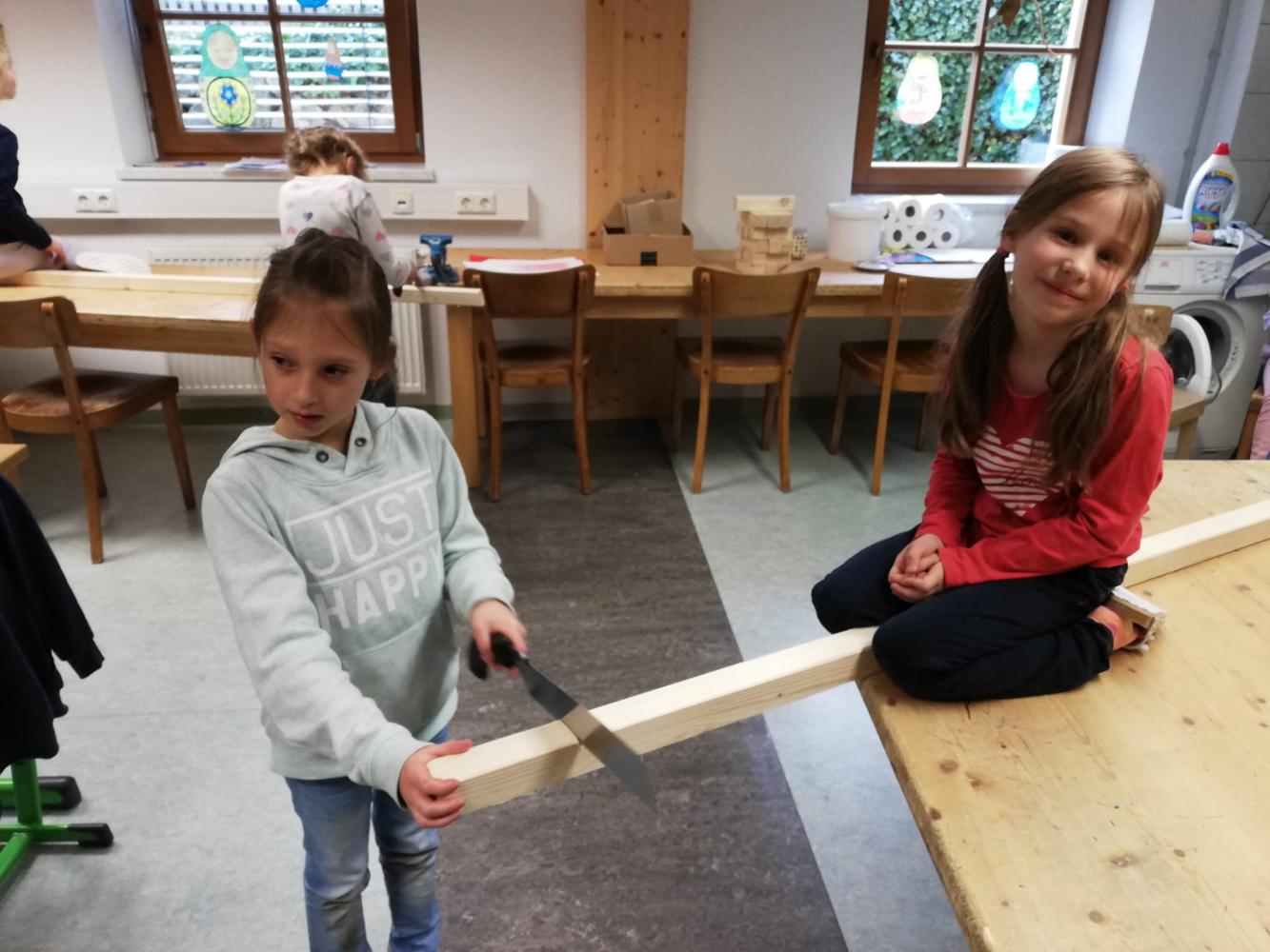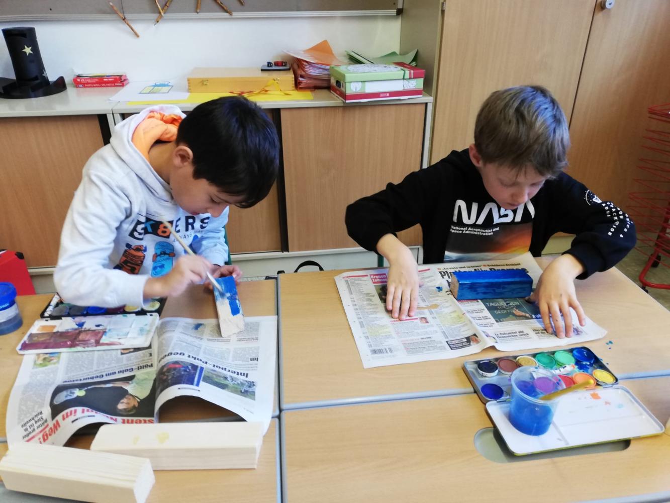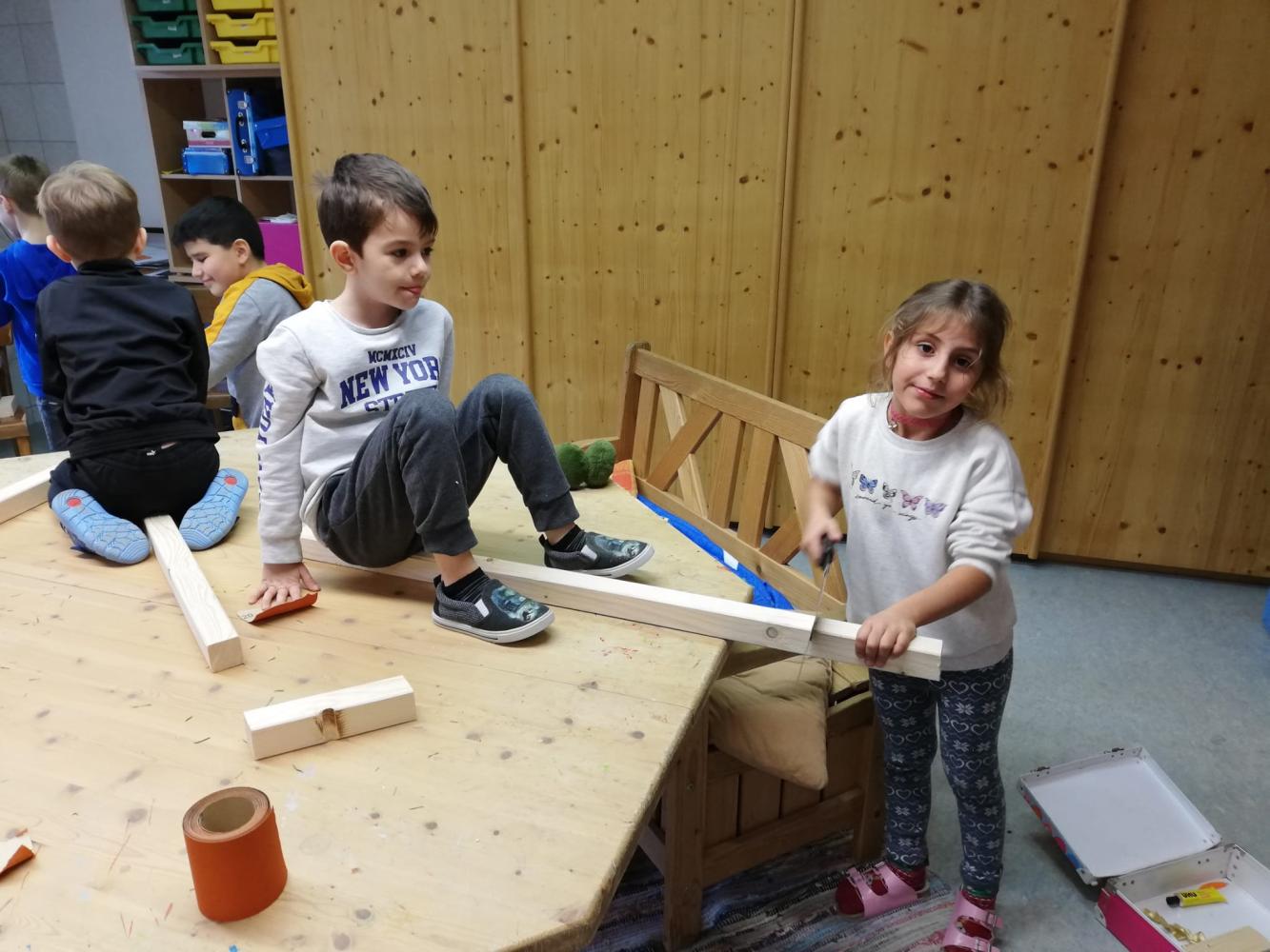 Kunst und Kreativität von Melanie Weißbacher 01. Februar 2023 Bildnerische Erziehung Werken Auch schon unsere Erstklässler sind begeistert beim Sägen, Hämmern und Malen.