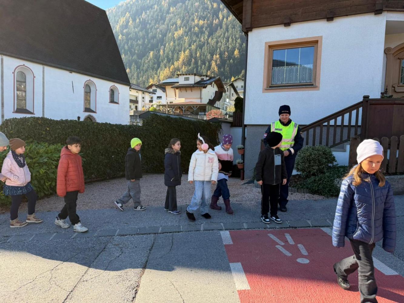 Die erste und die zweiten Klassen bekamen Besuch von der Polizei! Gemeinsam mit den Polizistinnen übten die Kinder das sichere Verhalten auf dem Schulweg. Sie lernten, wie man richtig die Straße überquert, wo Gefahren lauern können und warum Sichtbarkeit so wichtig ist. So starten alle sicher und selbstbewusst in ihren Schulweg-Alltag!