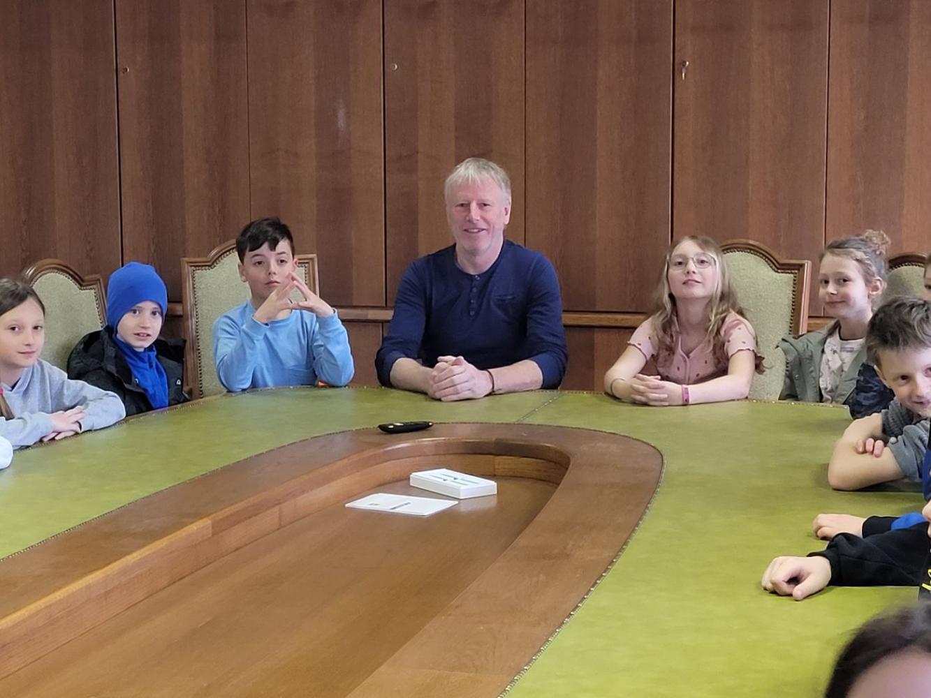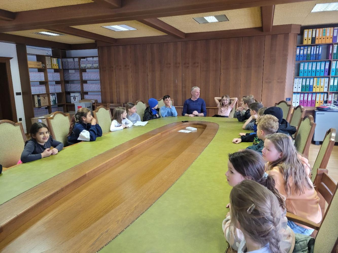 Unser Besuch im Gemeindeamt von Melanie Weißbacher 30. April 2025 Sachunterricht Im Rahmen des Heimatkundeunterrichts besuchten wir das Gemeindeamt. Geführt wurden wir vom Bürgermeister Josef Wibmer. Dabei lernten wir die Aufgaben der Gemeinderäte kennen. Im Sitzungsraum durften wir noch viele Fragen zur Gemeinde stellen.