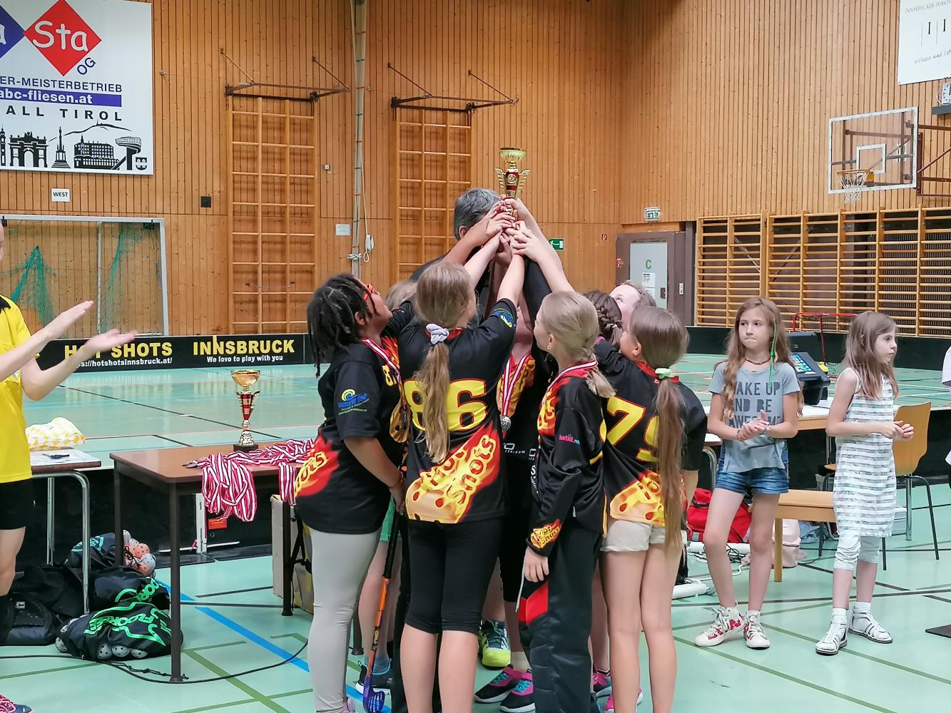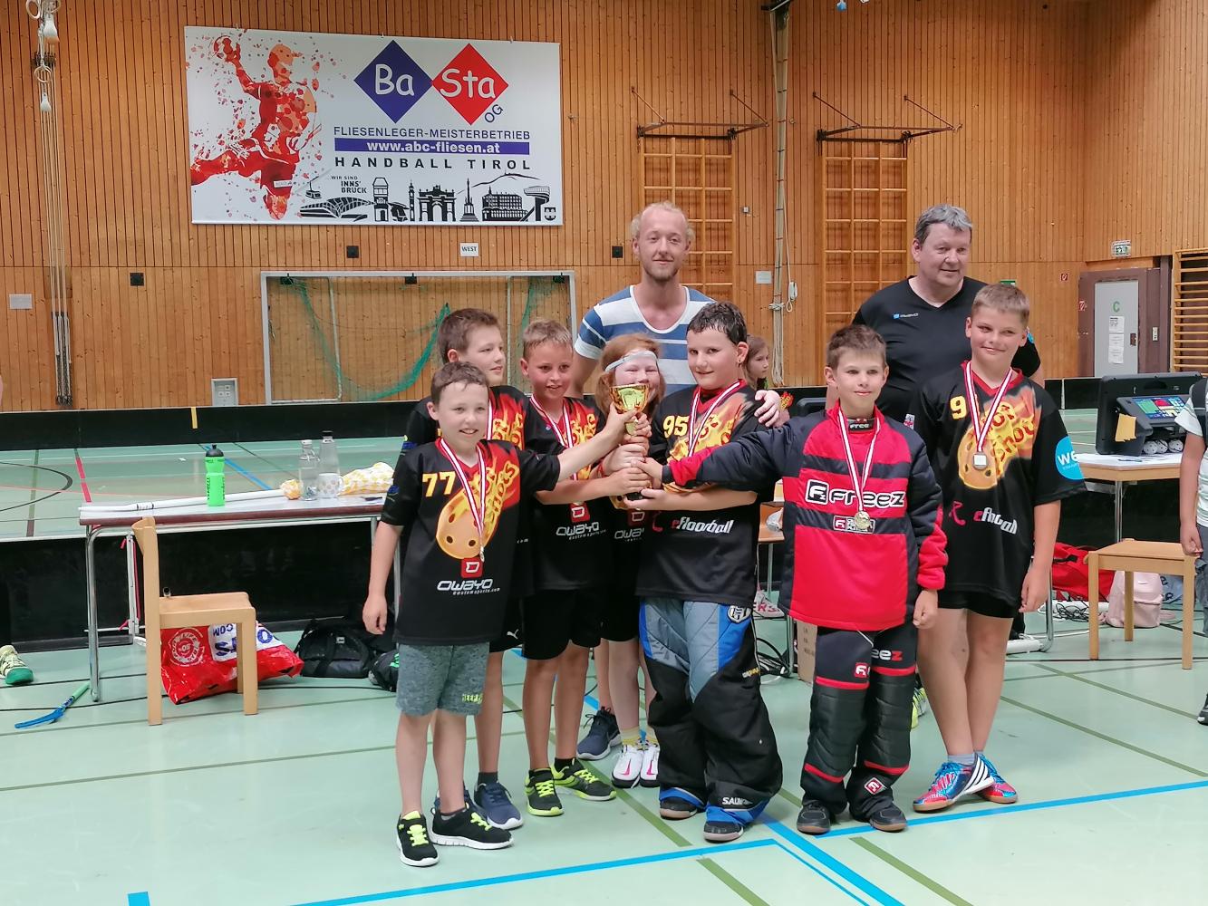 Das Turnier in der Landeshauptstadt hat allen großen Spaß gemacht. Wir freuen uns schon darauf, dass nächstes Jahr mehrere Schulen wieder mitmachen wollen und wir genug Zeit haben, das auch zu organisieren. Ein großes Danke an den Tiroler Floorballverband für die Unterstützung, danke an die Schulen fürs Training und fürs Mitmachen, danke an alle TrainerInnen, die die Schulen betreut haben, danke an die Kinder fürs fleißig trainieren, fair spielen und fürs Mitmachen, danke an die vielen HelferInnen, die rundherum geholfen haben (Aufbau, Abbau, Spielbüro, Einlass, Fotos, usw.), danke an die Fans fürs Kommen, danke an die Volksschule Hötting West und die Stadt Innsbruck für die Benutzung der Halle.